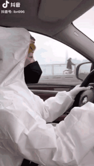 起初没有防护服,她每天穿着雨衣,带着滑雪镜,开车去送饭。