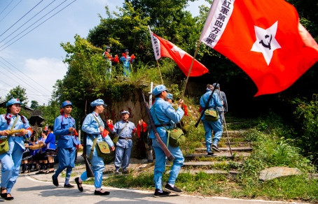 党政机关、社会各界重走当年通道转兵、西进贵州的红军长征路。