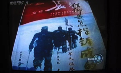 邓存健主席是发自内心的喜悦,一边说还一旁拍打或是抚摸我的肩膀,主席对副主席特有的爱抚与赞赏,让我刹那间一身的温馨洋洋得意,陪同周围的各种眼神盯住电视屏幕——《信仰是怎样铸成的》文化长征三人雪地长征背影书封配央视名嘴播音……正全屏定格《新闻联播》足足8秒钟的特写镜头……