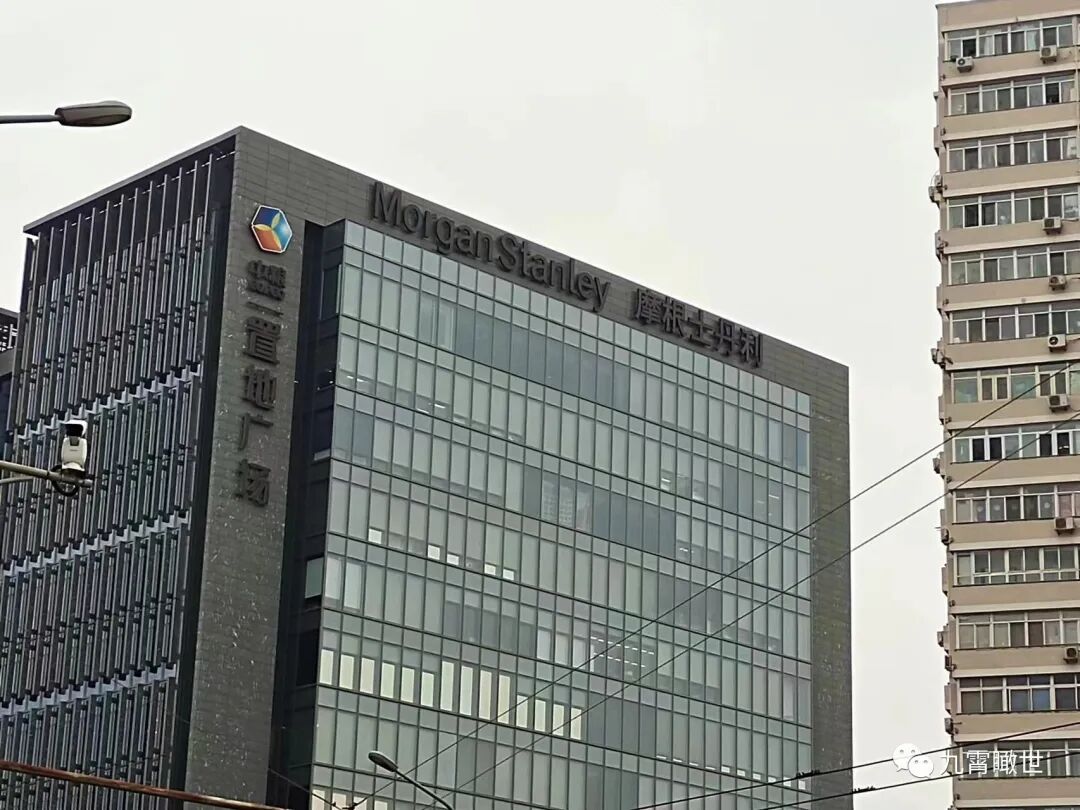 因为这个“摩根士丹利”的招牌,是灰底灰字,并不显眼。中国人写招牌,一个特点,就是必须突出显眼,但这个招牌例外。又写在楼的最高处,如果不抬头,不注意看,尽管在闹市区,也不容易发现。