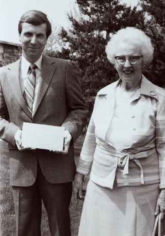 1979年秋,图古德“超好”教授和菲斯在中蓝杉树时合影