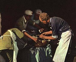 5月2日,白求恩率一批医护人员离开延安前往晋察冀边区,成了一名战地医生。