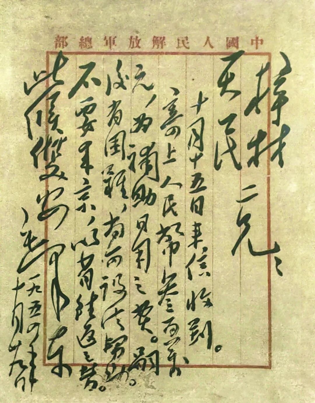 位于湖南省湘潭市的韶山毛泽东同志纪念馆,日日游人如织。11月的一天,《环球人物》记者走进这里,看到人们纷纷在一封信前驻足。信中写道:“寄上人民币叁百万元(旧币,1万元相当于新币1元,此处即300元),为补助日用之费。嗣后有困难,尚可设法帮助。”