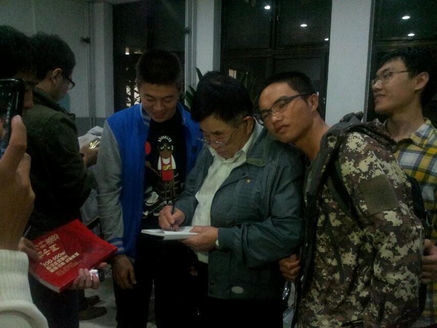 讲座结束,同学们恋恋不舍,纷纷要求韩将军题字和留影