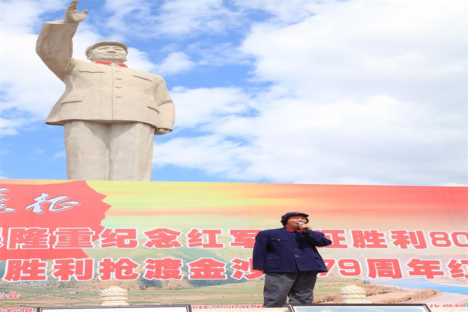 丽江红色文化研究会会长杨会民在“丽江各族儿女行走红军长征路出征仪式”上演讲行走红军路的意义