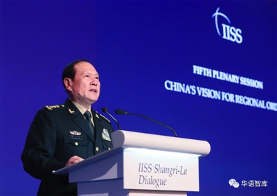 6月12日,国务委员兼国防部长魏凤和在第19届香格里拉对话会上就“中国对地区秩序的愿景”发言。图为发言现场。李晓伟摄