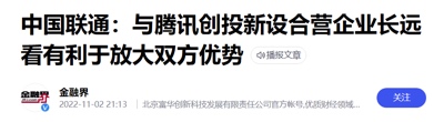 腾讯动作很快,马上辟谣说相关消息不实,但是造谣的人更快,马上把10月27日的一个新闻拿出来炒作:联通下属子公司联通创新创业投资有限公司(简称“联通创投”)与深圳市腾讯产业创投有限公司(简称“腾讯创投”)新设合营企业!