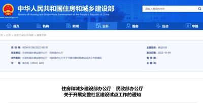 起因是10月31日,住建部、民政部联合发布《关于开展完整社区建设试点工作的通知》。文件中提到:试点社区“适应居民日常生活需求,配建便利店、菜店、食堂、邮件和快件寄递服务设施”,并要求各市选取3个-5个社区开展完整社区建设试点,自2022年10月开始,为期2年。