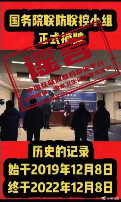 他们居然连“国务院联防联控机制悄悄摘牌子”,这种谣言都能制造出来。(见图)