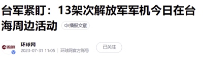 于是,对于这一次的美对台军售行为,解放军也以实际行动交底,亮明了中方态度。据台媒7月31日报道,台防务部门统计,自30日上午6时起至31日上午6时止,共有解放军军机13架次,其中逾越所谓“海峡中线”6架次。另有军舰6艘次,持续在台海周边活动。其中越过所谓“海峡中线”6架次解放军战机分别是,2架歼16以及4架歼11。