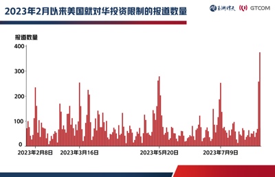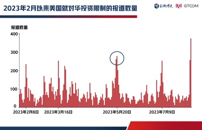 其实,拜登政府从2022年就开始考虑对华投资限制了,但透过美国相关报道数量的变化,不难发现,对华投资限制开始成为媒体报道的热词,是在今年2月、3月、5月和7月。
