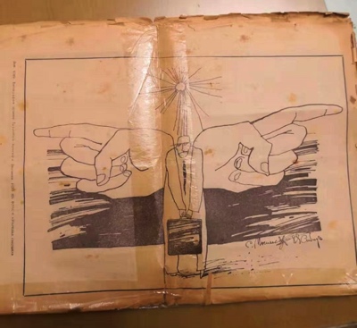 “500天纲领”得名于一份叫做《民主俄罗斯》小报上刊载的《国家向市场关系过渡的500天纲领》。[3]这份小报长宽相当于现在的A4复印纸,正文14页,连同封面、封底共计16页。封面上方,在“民主俄罗斯”蓝色大号字的报头右边,写着几排黑色小字:“这份报纸向所有认为不能这样生活的人发行”;报头下边,也写着一行黑色小字:“俄罗斯民主力量的报纸”。封面通栏蓝色大标题分两行:第一行是特大号空心字“纲领”;第二行左边是更大号的实体字“500天”,右边是“国家向市场关系过渡的”四行黑色字。通栏大标题下方,印有满面春风的叶利钦和他的几位幕僚跨步行走的黑白照片。小报最后一页封底,印有一副漫画,一位戴礼帽、缩颈脖、双手拎提包的人,背后有两只相反指向的大手,似有何去何从之寓意。在苏联解体的前一年,1990年10月间,这张小报在莫斯科大量发行。我当时在莫斯科普列哈诺夫国民经济学院访问进修,就是在地铁门口的报摊上买到它的,价格是50戈比(0.5卢布)。