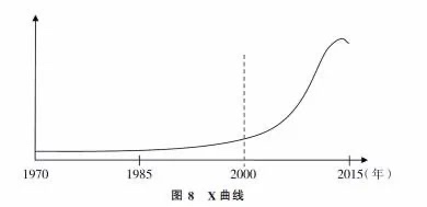虽然工业体系的递增报酬可以从逻辑上较好地解释中国经济高增长的内生动力,但它也是一个不可量化的概念。那么,是否还存在其他可以决定高增长的变量?例如,遵循新古典增长核算的框架,一些经济学家近年来把高增长的原因说成是“主要依靠政府投资和巨额信贷拉动”的。因此,解释高增长原因的关键是从逻辑上证明,如果不存在递增报酬机制,那么最初响应宏观政策变化的增长只能是“递减报酬”的,不会变成一场持续的高增长。为了验证这个问题,本文提出一个X曲线谜题,见图8。