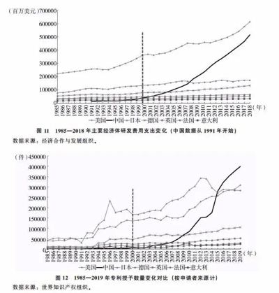 图11展示的是研发投入的增长,而图12是研发结果的增长,当我们把这两个指标看作对中国科学技术进步的衡量时,那么它们的增长曲线则反映了科技进步与经济增长之间的互动关系,即当我们承认科技进步是经济增长的驱动力的同时,我们也必须承认经济增长是科技进步的驱动力。这个关系并不难理解:如果没有以工业体系为主的应用载体,中国既不会产生对科技进步的需求,也不会具有对科技进步的投资能力。因此,中国科技的高增长只能发生在与经济高增长互动的过程之中。这种关系同样表现在教育领域。