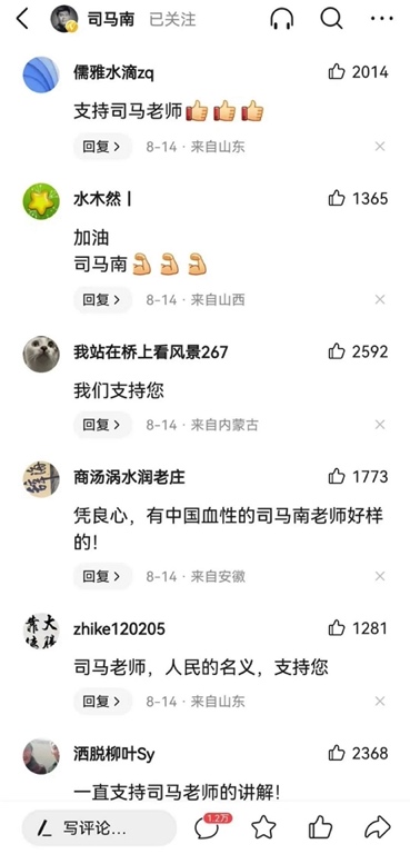 人心向背,我想大家是可以看的清清楚楚的。司马南承认了自己的问题,而评论区似乎根本就没人在意这个事。