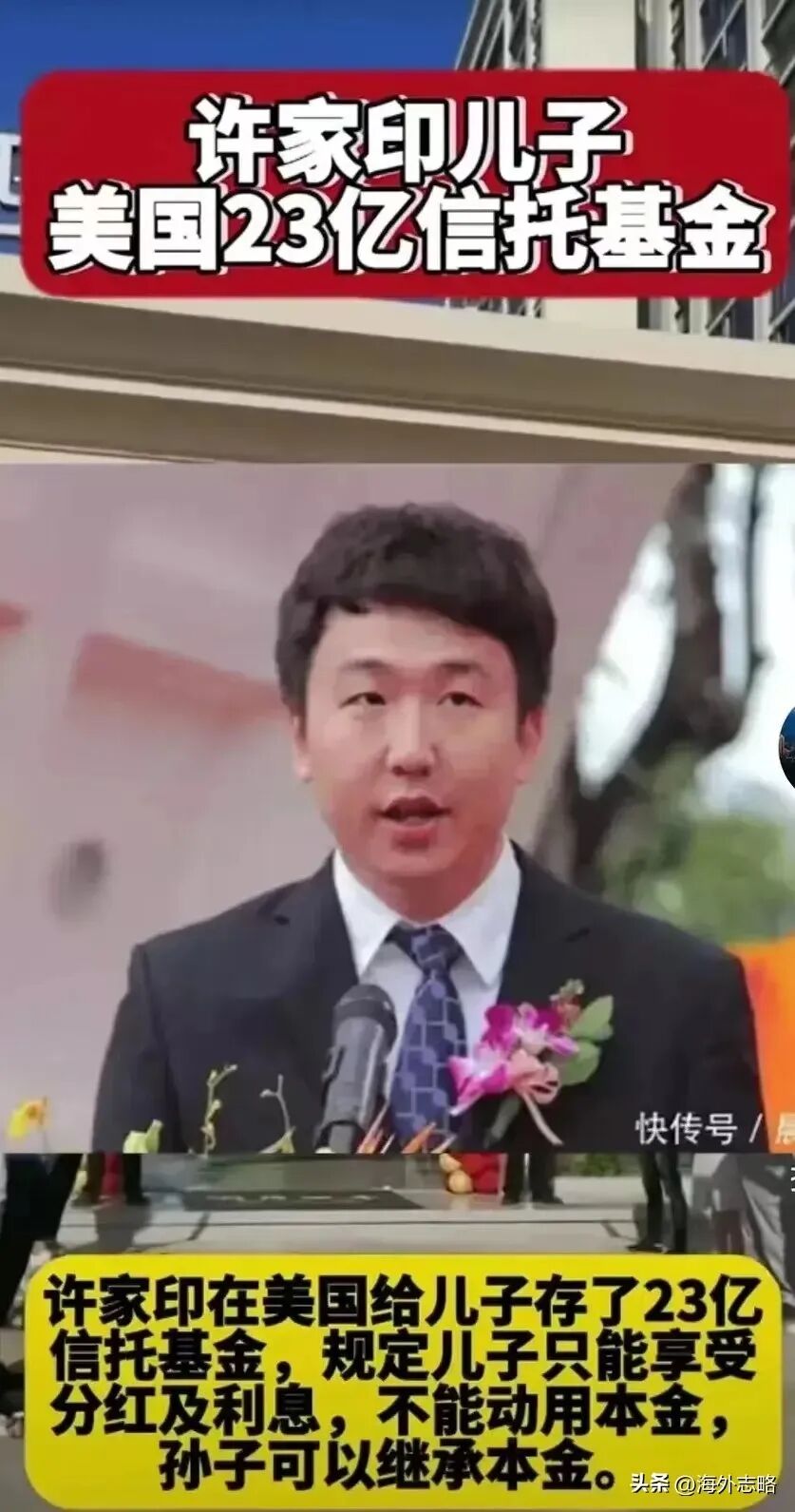 据凤凰网报道,许家印的儿子也被曝光在许家印申报恒大财产破产前,得到了一个金额高达23亿的单一家庭信托基金,这也被称为是许家印给他儿子的“富二代保护计划”。