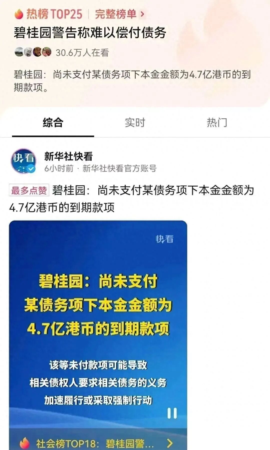 10月10日,碧桂园在公告中明确表示,公司尚未支付某债务项下本金金额为4.7亿港元的到期款项。