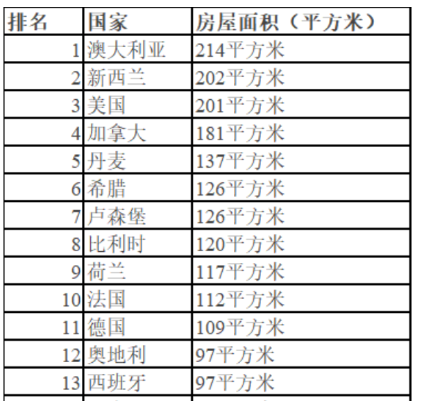 根据世界各国发布的住房户均面积数据,排名前四的是大家公认的“地广人稀”国家。