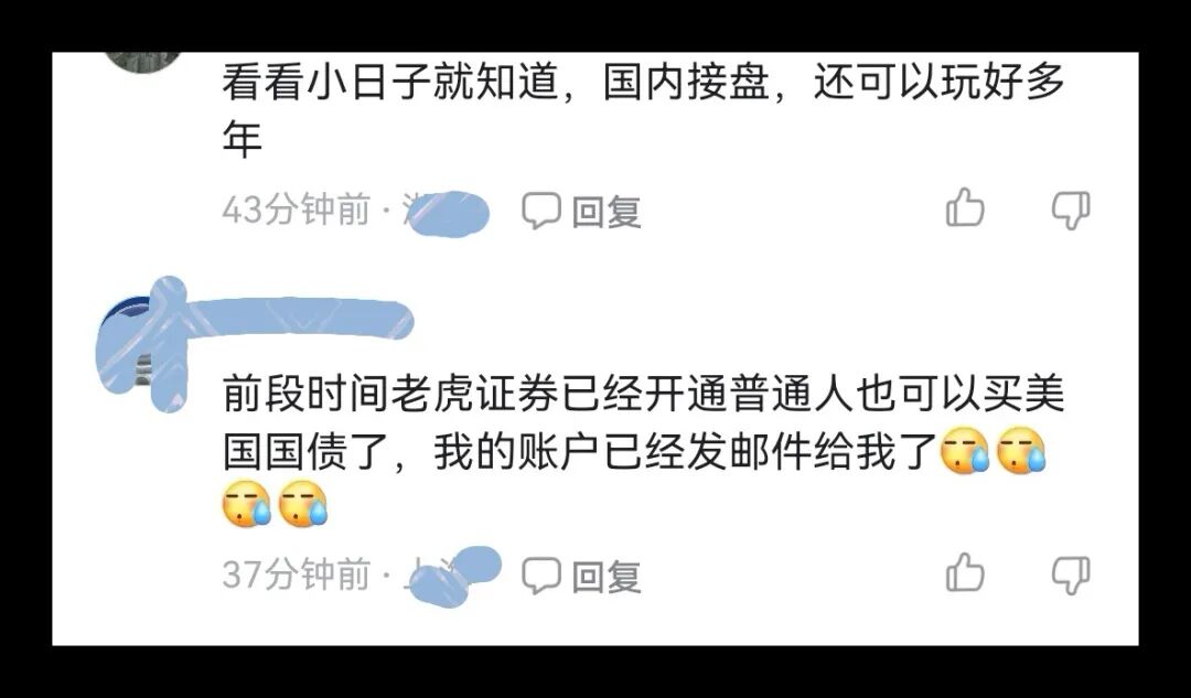 在相关消息上发现有网友评论,前段时间某些证券公司,开通普通人也可以买美国国债了。