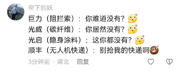 我们听到了很多段子,什么巨力索具的航母阻拦索,什么做鱼竿的光威搞出了战斗机用的碳纤维,什么做汽车油漆的光启高出了隐身涂层,什么顺丰的双尾蝎无人机.......爽是爽了,但又引发了另外一种离谱的说法:“你看,出成果的都是民企!”,意思是国企、正经军工企业不如民企有创造力.......