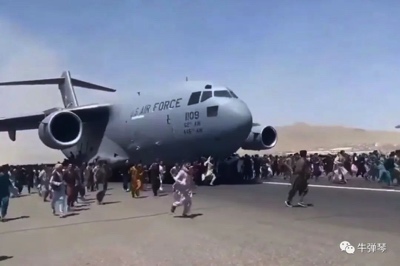 这中间,还发生了痛心的一幕幕。一架C17起飞时,多名阿富汗平民被碾压丧生;还有一次C17飞到半空,两个人影,像蚂蚁一样从空中跌落身亡……