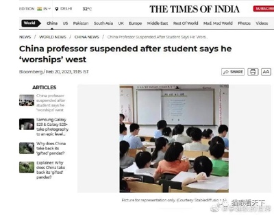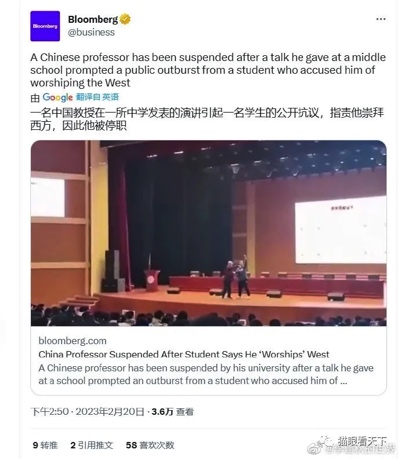 和观察者网称他宣扬功利性内容不同,彭博社说,他是因为崇拜西方才被停职的。显然,玩阴的彭博社更胜一筹。