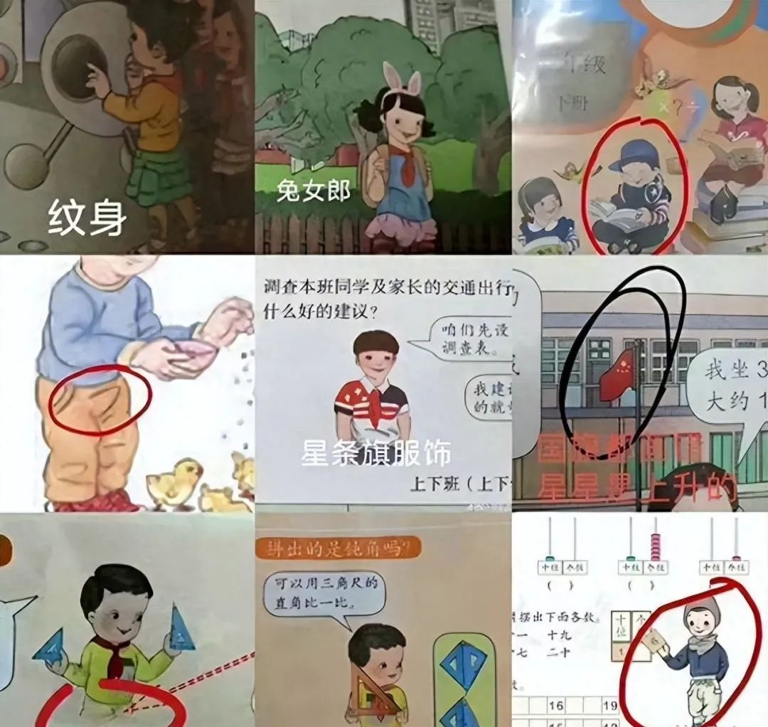 可随着这件事越闹越大,类似的图片也越来越多,一些中小学的课本上,都被发现印着一些带有争议性的图片,带纹身、露出隐私部位的插画层出不穷。