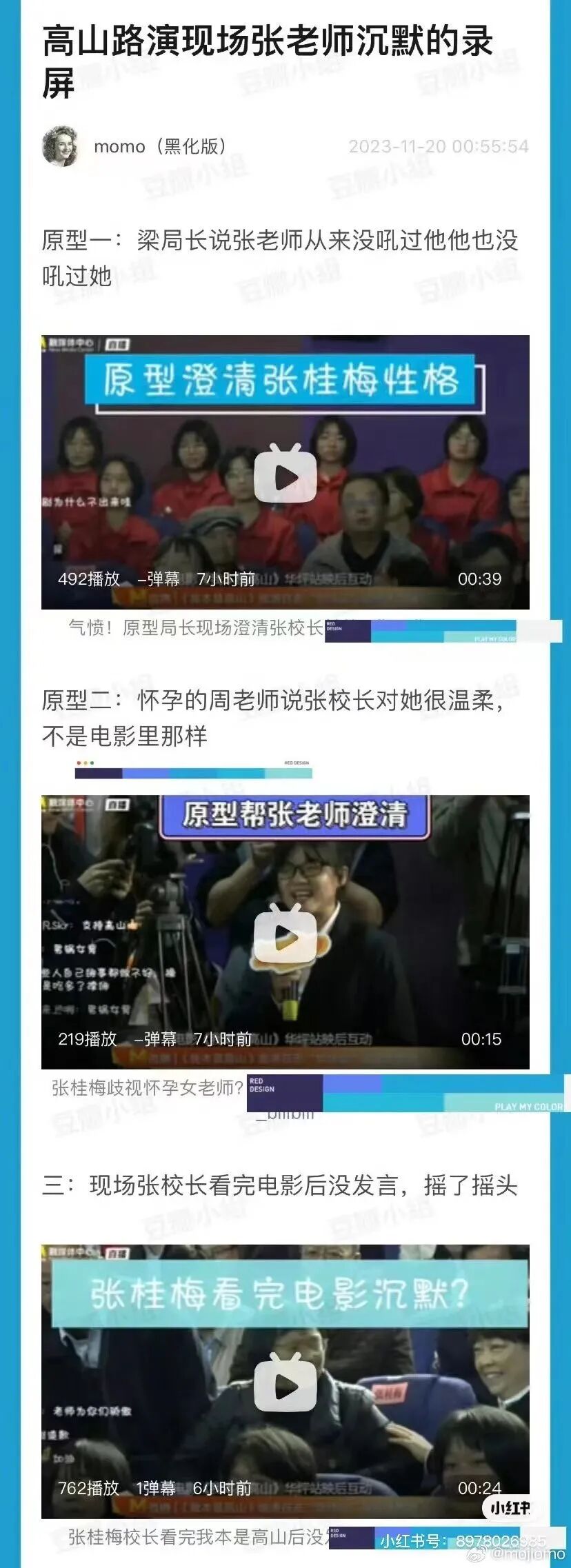 你看,到底是谁不讲“实事求是”啊,到底是谁在搞“假大空”啊?他们不但不明白共产党人的信仰和理想,他们更不理解共产党人认识世界、改造世界的能力和水平。今天,但凡吹捧这部片子的……普通群众我不管,但凡是共产党员,都摸摸自己的前胸,看看党徽还在不在?回忆一下入党誓词,问问自己的党性还在不在,理想还在不在?某些人一叶障目,不见泰山,实际上中国大地上到处都是张老师一样的共产党人,他们忘了牺牲在脱贫攻坚一线的1800名干部,他们忘了那个牺牲在大山里的黄文秀,忘了她在西行漫记》书签上写下“安得广厦千万间,大庇天下寒士俱欢颜”;“伟大不是只有如山一般高大的功业,是黄河奔流到海不复回一样春秋不改的坚定,是明知山有虎,偏向虎山行的勇气,是“吾庐独破受冻死亦足”的心甘情也愿”......他们更忘了面对疫情、洪水、灾难,那些冲锋在前不计生死的党员干部,今天夏天,那位牺牲在洪水中的副县长和政委,离我们根本没多远……天下的高山多的是,只有他们自己躲在枯井里不见天日。《我本是高山》这部电影的营销团队是非常无耻的,他们不是要还原张老师这位共产党人,而是要借这位奉献一生满身伤痛的老人去宣传他们的电影,牟取他们的利益,他们甚至还把身患重病的张老师请到闹哄哄的电影院坐两个多小时,还要和那些观众、记者互动,完全不顾她的身体状况……无下限的娱乐资本,甚至在榨干一位共产党人的价值。张老师为什么拒绝评价电影?她的学生为什么说“张老师根本不是电影里的那样”?你们真的是不知道自己错在哪里吗?