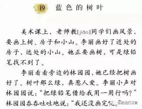 如此的例子比比皆是,如著名的小学课文《蓝色的树叶》 ,文中提到了中国小朋友不愿意借笔给另一位小朋友,导致另一位小朋友画出蓝色的树叶,悄悄地表现了“小气自私”的中国人形象。