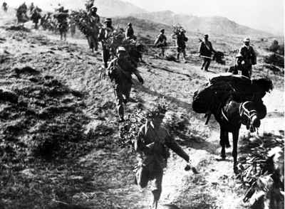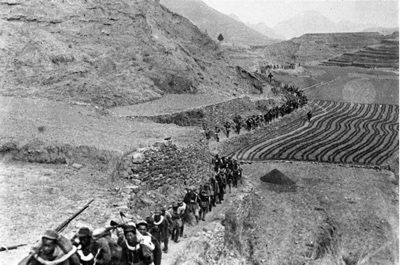 1947年5月13日,华东野战军在山东沂蒙山区发起孟良崮战役。图为我军向孟良崮进军。图|新华社