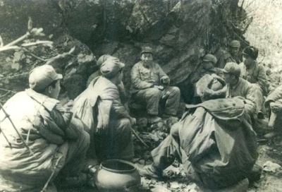 上图_第五次战役时李开湘将军主持第12军政治部紧急会议,1951年4月,朝鲜三八线南