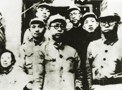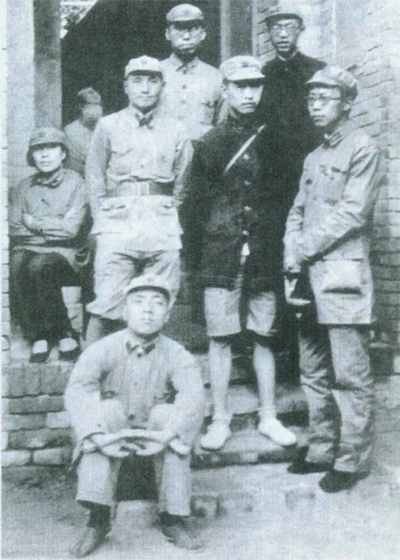 ◆1937年,黄克诚在陕西三原县云阳镇留影。前排坐者杨尚昆,二排左起:李伯钊、邓小平、杨奇清、陆定一;三排左起:罗荣桓、黄克诚。