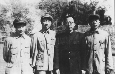 ◆1936年黄克诚在陕北留影。左起:李伯钊、邓小平、杨尚昆、陆定一、 黄克诚、杨奇清、罗荣桓。