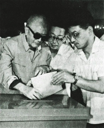 ◆1981年6月27日至29日,中共十一届六中全会通过《关于建国以来党的若干历史问题的决议》。黄克诚(左一)在六中全会上投票。