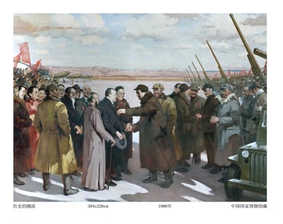 四年以前,我在采访著名油画家、中国油画学会副主席、中国美术学院教授全山石先生时专门请他谈了1986年创作《历史的潮流》这幅画的主题思想。他说:这是他在20世纪80年代主动提出为中国革命博物馆(现国家博物馆)创作的。中国革命的胜利是在中国共产党的领导下取得的,但是,各民主党派也做出了很大的贡献。《历史的潮流》表现的是民主党派人士从全国各地乃至海外聚集起来到北京,迎接从西柏坡来北京的毛泽东、朱德、刘少奇、周恩来、任弼时等中共中央领导人。就表象而论,这似乎是一个特殊的历史时刻,实际上却是百川归海,是历史的潮流,具有历史的必然性,是中国共产党指明的关于中国革命和中国发展的一个方向。全山石先生的《历史的潮流》这幅画,恰当地体现了绘画这一瞬间艺术的一个特点,以直观的形式展示了中华儿女人心所向和中国共产党“进京赶考”这一重大历史事件,同时又给人以深刻的思想启迪:这个历史的潮流究竟是如何形成的?