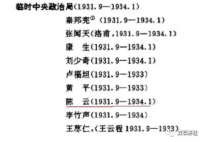 ㈠六届四中全会后的临时中央政治局(1931.9~1934.1)