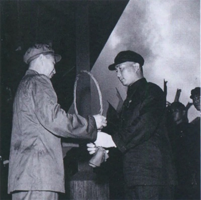 ◆1949年10月,王震率部到新疆,在迪化机场受到各族人民的欢迎。