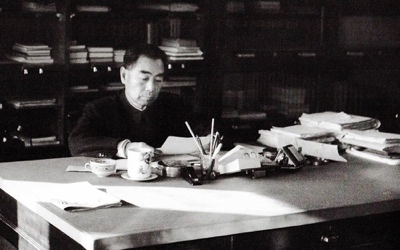 ◆晨曦初照,周恩来在工作。