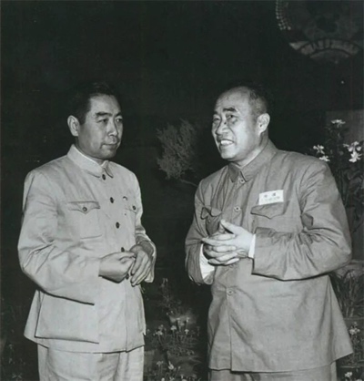 ◆1950年,周恩来和朱德在会议休息时交谈。