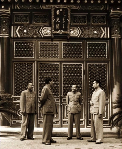 1954年,陈云和毛泽东、周恩来、朱德在中南海紫光阁