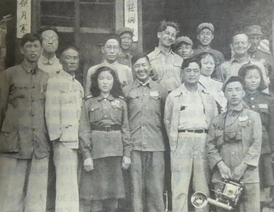 1951年8月,我方记者团在来凤庄。第2排右3是魏宁顿(英),第3排右1是贝却敌(法)。