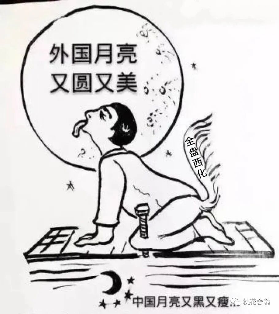 当下,一切唯“美国”(包括那几个西方“民主自由发达”国家)是崇的“右”的“全盘西化”思潮显然比较严重。但同时,也存在着一些“左”的“全盘西化”者,他们言必称“马克思主义”,否认毛泽东思想与中华优秀传统文化之间的关系,对一切事物的评判都教条化地引用马、列、毛的语句,轻视乃至鄙视“祖国文化遗产”。比如近来有人谈论“马克思遇见孔夫子”——即讨论马克思主义思想与中华优秀传统文化思想的某些相似之处,“左”的“全盘西化”者们就火冒三丈,坚决否认二者有任何相似之处,更甭说让他们理解马克思主义的源头是中华“大同”思想的事实了。
