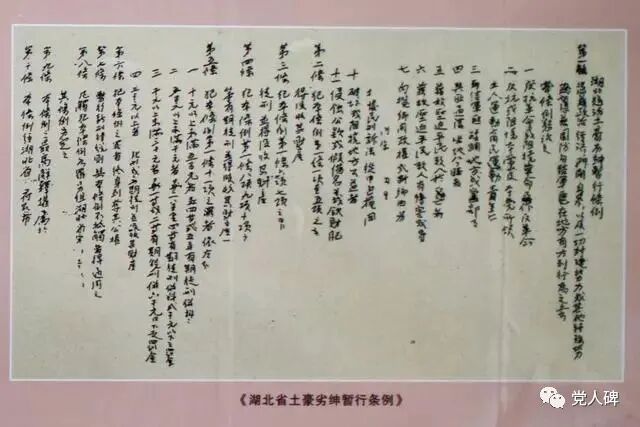 如果您还觉得不够具体,同时期日本学者田中忠夫还援引了1927年3月2日,由国民党湖北省党部常务委员的董必武制定实施的《湖北省惩治土豪劣绅暂行条例》,国共分家后,这一条例仍被国民党认可并稍加修订),详细罗列了符合“土豪劣绅”标准,请注意这已经是作为共产党反对面的国民党认定的标准(1927年8月,国民政府中央政治会议190次议决公布《惩治土豪劣绅条例》):