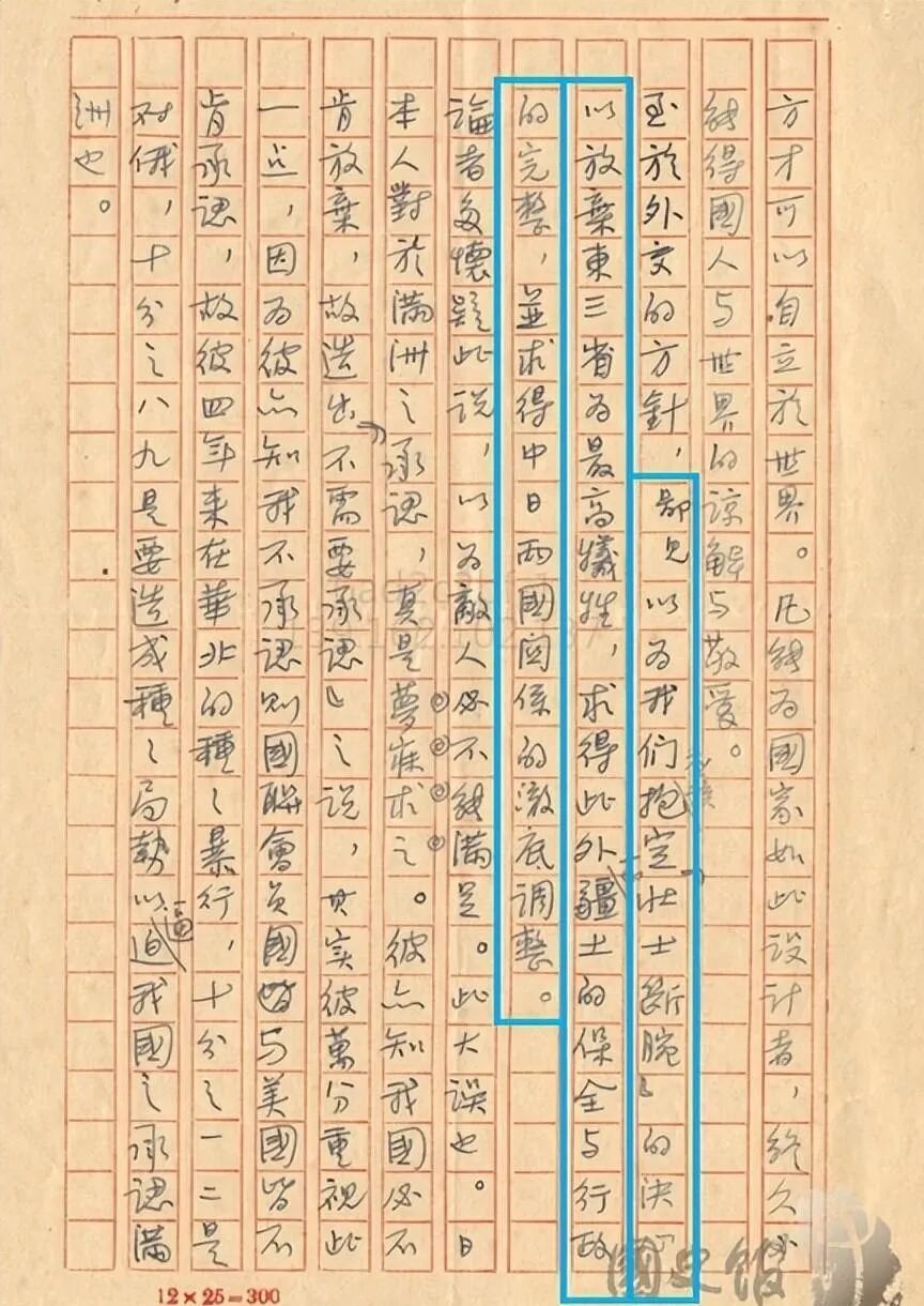 比如,在抗日战争全面爆发后,胡适就给蒋介石写信,劝蒋介石放弃东三省,承认伪满洲国,走所谓和平之路....(蓝框部分)