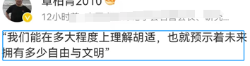当然,公知吹捧胡适不仅仅在于胡适是他们的“同路人”,还在于他们要借胡适的口说出他们想说但又不敢说的话。至于那些话到底是不是胡适所说的,对公知来说,那并不重要,重要的是他们可以拿胡适做挡箭牌,用胡适做“免责声明”。