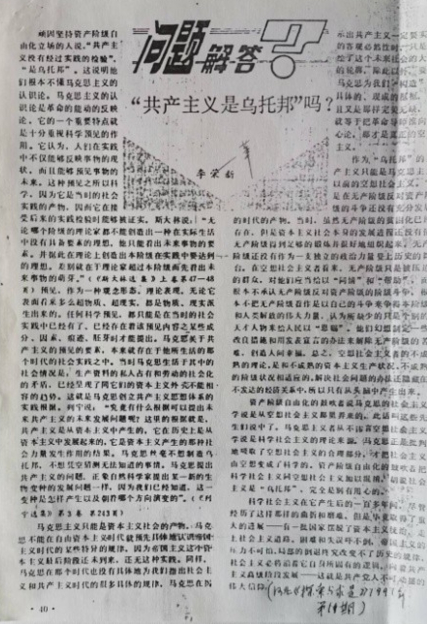 第二篇《坚信科学社会主义基本原理的实践性》,发表在河北《探索与求是》1990年第11期。因該刊把题目改成了《共产主义是“乌托邦”吗?》,把署名也印成了李“荣”新,特别是没有了“坚信”二字,感觉文章力度大大的打了折扣,如鲠在喉,就一直想着修改、重新发表。
