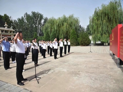 定州市直机关工委在清风店战役烈士陵园,举行2023年市直机关预备党员集中入党宣誓仪式。