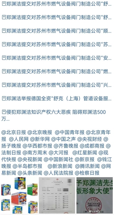 用这种办法,某作家给国家知识产权局施压,指名道姓的希望在对“苏州市燃气设备阀门制造有限公司”和德国在华企业“舒克”(上海)管道设备服务有限公司的侵权案诉讼中获胜。