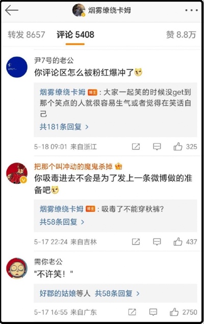 在一众狂吠的恶犬声中,公开撕咬得最起劲的,是笑果文化培养出来的知名毒犯卡姆。