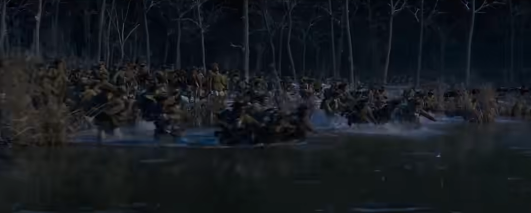 在中国人民志愿军刚刚进入朝鲜时,影片以主角之一“李默尹”的视角,呈现了这样一个场景。